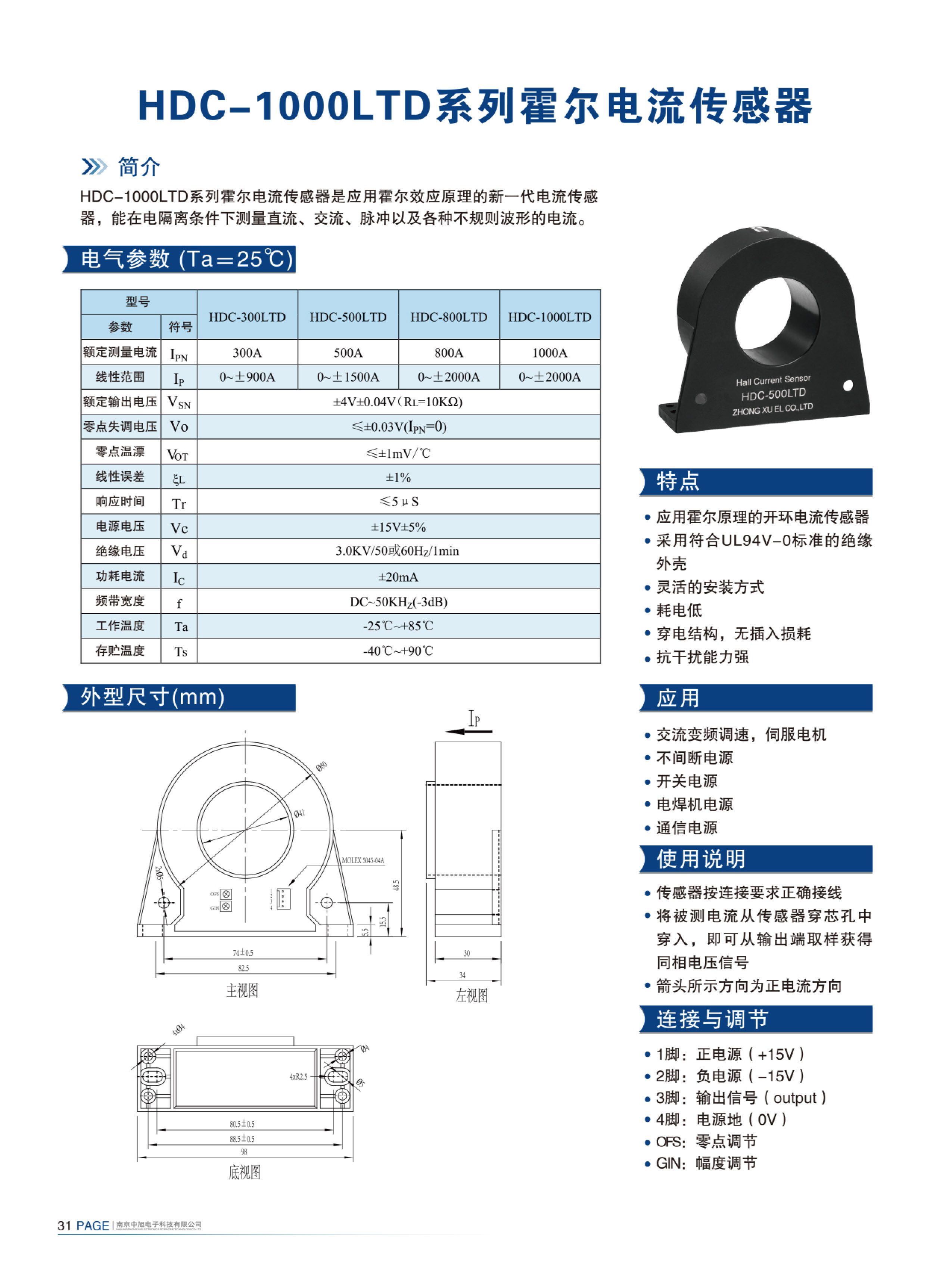 HDC-1000LTD系列霍爾電流傳感器是應(yīng)用霍爾效應(yīng)原理的新一代電流傳感器,能在電隔離條件下測(cè)量直流、交流、脈沖以及各種不規(guī)則波形的電流。